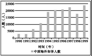▲1990—1999年中國海外留學(xué)人員數(shù)量統(tǒng)計(jì)圖