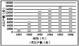 ▲1991—1996年《華夏文摘》直訂用戶數(shù)量統(tǒng)計(jì)圖