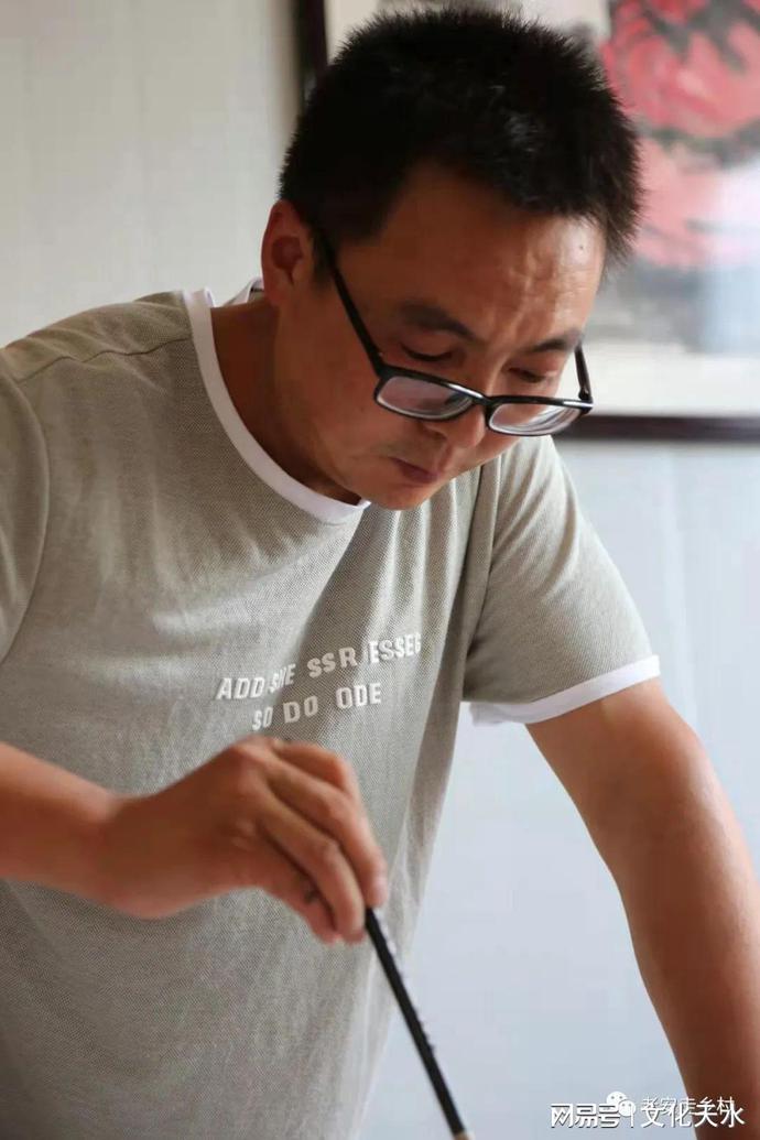 而張開茂小弟全不是這樣,對任何人都是很恭敬,滿臉的謙遜,一臉孩子般的笑容。你覺得他就似一位剛進(jìn)入書畫界的學(xué)徒一樣,你畫畫寫字,他也不多評論,只是站在旁邊專注的看,筆剛用完馬上跑去洗掉,恭恭敬敬的又放到畫案上,筆洗里的清水在你不知不覺中悄悄換掉。本來我就是一位比較疏懶的人,跟許多人一樣是只喜歡做飯不愛洗碗的人,寫完的筆隨手一放,筆洗盆里的水簡直還能當(dāng)?shù)?,自從認(rèn)識了開茂小弟,省去了許多麻煩,就像過家的人,一個做飯,一個洗碗,配合的天衣無縫。這是生活上開茂給我的印象。