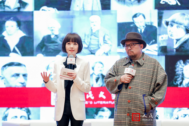 最后一個環(huán)節(jié)是“戲?。号c人生對話”。導(dǎo)演兼演員黃磊在“文學(xué)課”視頻中講述了關(guān)于戲劇和戲劇欣賞的方方面面。濮存昕是國內(nèi)出演莎士比亞戲劇最多的男演員之一,同時也是演出契訶夫作品最多的演員,他現(xiàn)場回憶起自己在父親引領(lǐng)下,由老版網(wǎng)格本中的契訶夫作品開啟了閱讀之旅、文學(xué)之旅。。北京外國語大學(xué)的意大利語文學(xué)譯者文錚對老版網(wǎng)格本心向往之,第一本買到的是《波斯人信札》,他說,自己當(dāng)年對“財(cái)富自由”的定義就是可以隨心所欲地買網(wǎng)格本。北京大學(xué)藝術(shù)學(xué)院教授顧春芳在小學(xué)時就讀了網(wǎng)格本的《安徒生童話》,開始攻讀戲劇專業(yè)后又接觸了網(wǎng)格本中的許多劇作,她覺得網(wǎng)格本“就是一個經(jīng)典的符號,它哺育一代又一代人,可以說它是一代又一代人文學(xué)的母乳”。