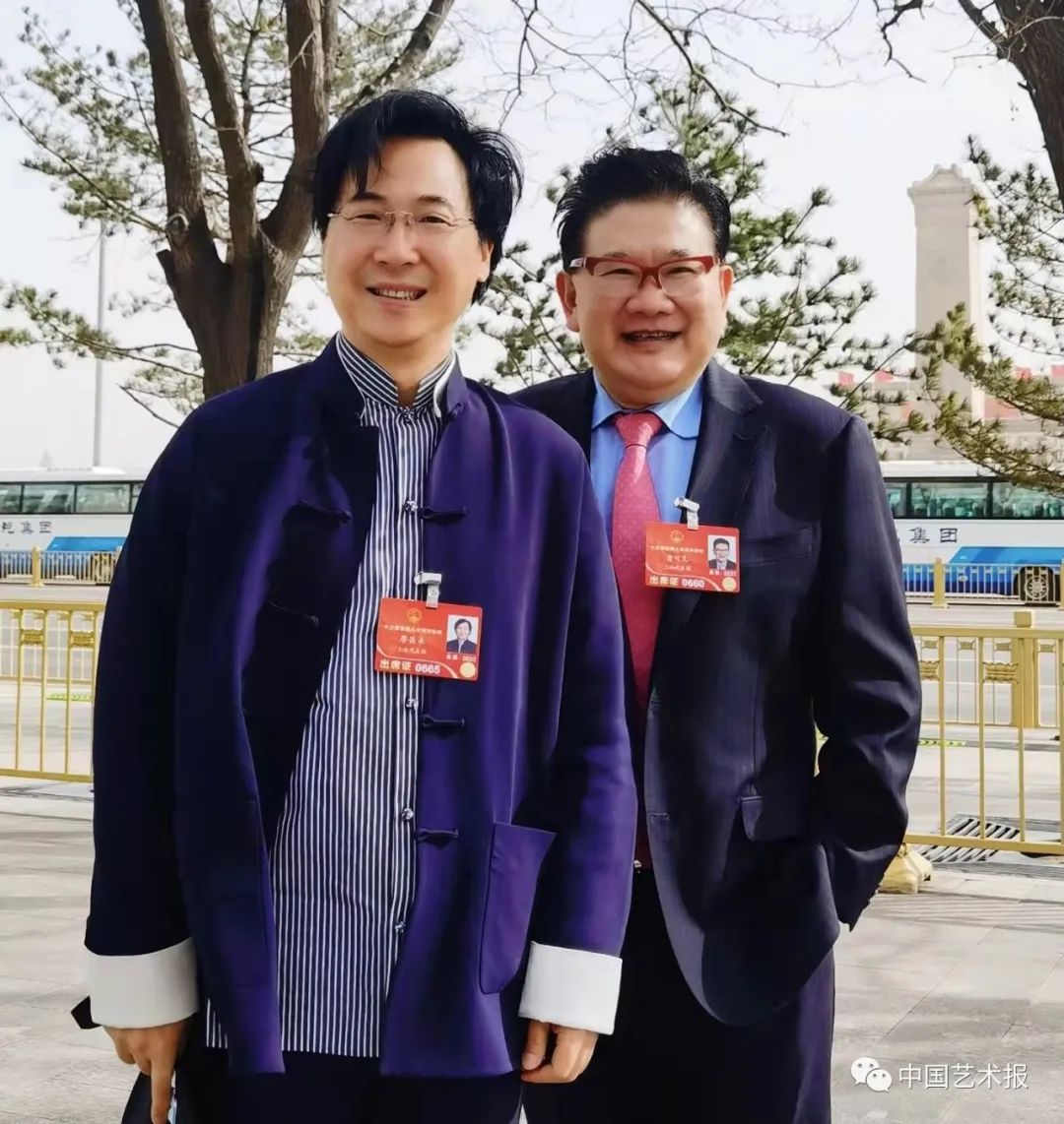 全國人大代表、中國音協(xié)副主席、上海音協(xié)主席廖昌永(左),全國人大代表、東方衛(wèi)視主持人曹可凡