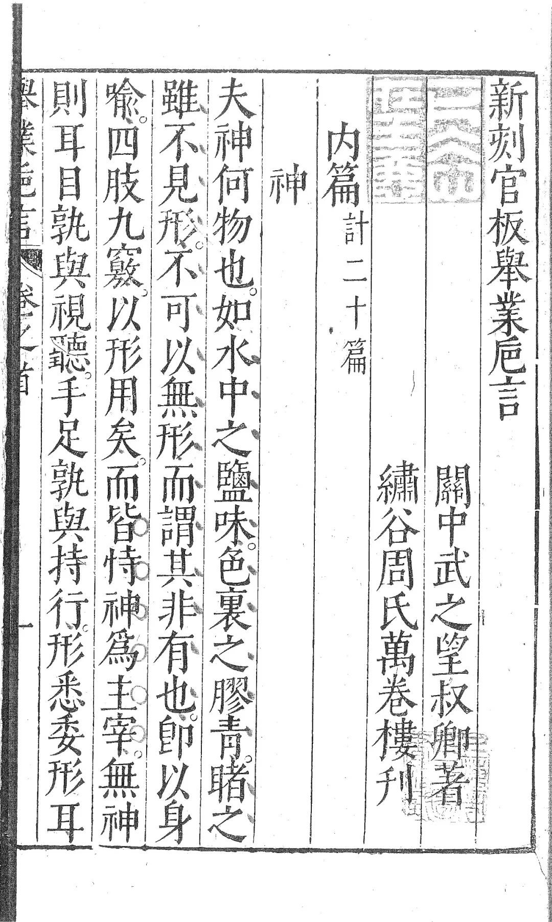 武之望、陸翀之《新刻官板舉業(yè)卮言》書影,明萬歷二十七年周曰??瘫?/p>