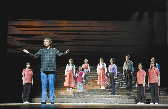 “同學(xué)們:我愛你們,我想你們,我等你們?!痹谘莩鲩_始和結(jié)尾,這幾句寫在黑板上的質(zhì)樸言語,道出了桂梅老師幾十年來對學(xué)生們最真摯的守候。12位演員分別扮演張桂梅的同事、學(xué)生,在舞臺上運(yùn)用宣講歌隊(duì)的形式完成場與場的空間切換,在講述桂梅老師故事的時(shí)候則有往事重演、時(shí)光穿越式的展示。她免費(fèi)擔(dān)任華坪兒童福利院院長,成為百余名孤兒的“媽媽”;她頂著重重壓力,克服種種困難創(chuàng)辦了免費(fèi)女子高中;她在昆明街頭為創(chuàng)辦學(xué)校募資,風(fēng)餐露宿四處奔波;為了把錢留給孩子們,她穿著破洞褲子參加黨代會引起記者關(guān)注;她身上幾十種病痛,甚至曾鬼門關(guān)走一遭,也擋不住她拯救山里孩子的決心,她對孩子們的愛,溫柔且堅(jiān)定,只為守候心中那片熱土。演出中,不少觀眾沉浸在桂梅老師的動人事跡中,潸然淚下。
