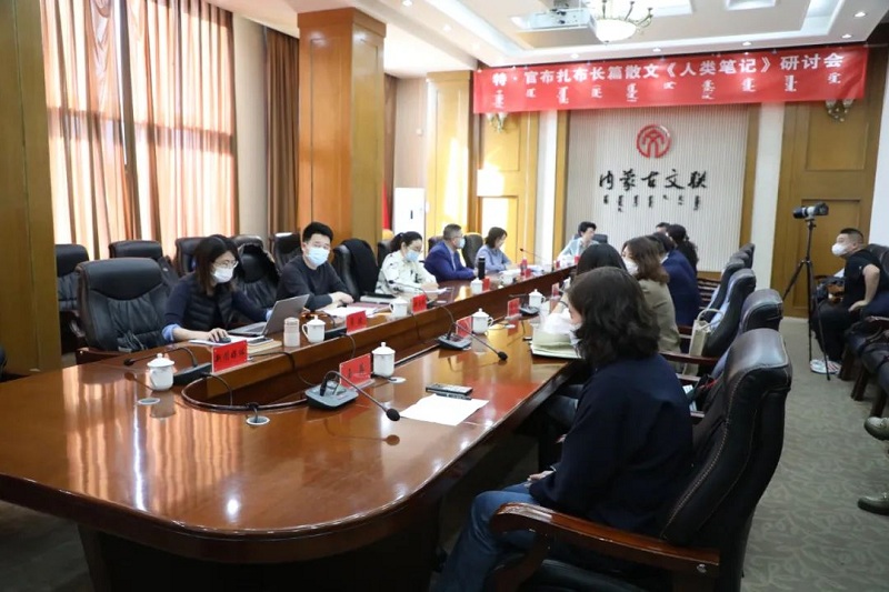 3月27日,由內(nèi)蒙古文聯(lián)、作家出版社聯(lián)合主辦,內(nèi)蒙古作家協(xié)會承辦的特·官布扎布長篇散文《人類筆記》研討會在呼和浩特舉辦。內(nèi)蒙古文聯(lián)黨組書記、主席冀曉青,作家出版社總編輯張亞麗,內(nèi)蒙古文聯(lián)名譽(yù)主席、作家協(xié)會名譽(yù)主席、《人類筆記》作者特·官布扎布,內(nèi)蒙古作家協(xié)會主席滿全等出席會議,會議以線上線下相結(jié)合方式舉行,研討會由內(nèi)蒙古文聯(lián)黨組成員、副主席閆艷主持。