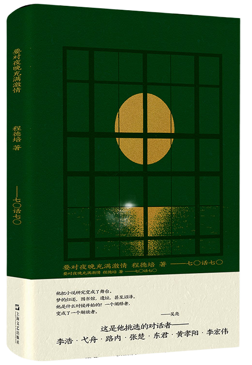 在七十之年,批評家程德培對他熱愛的文學批評文體,仍然充滿激情。《要對夜晚充滿激情》即是他新近完成的七篇關(guān)于“70后”作家的文學批評的結(jié)集,書中就李浩、弋舟、路內(nèi)、張楚、東君、黃孝陽、李宏偉這七位風格各異的“70后”作家作品進行評述,程德培沉浸在解讀中,將文本拆開又拼攏,既呈現(xiàn)出作品的精微,又完成著自己的書寫風格。程德培的批評家友人吳亮以“闡釋者變成了解放者”來評價這部新著,“他把小說研究變成了舞臺。夢的歸還,圖書館,遺址,甚至沼澤。”