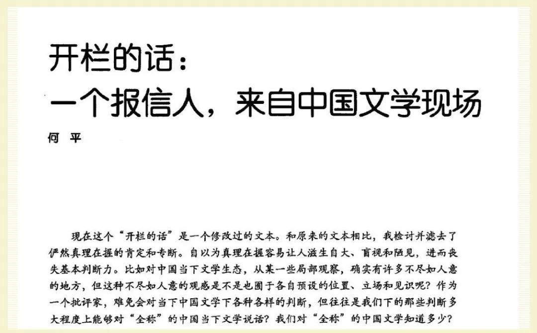 拒絕滋生文學(xué)批評的泡沫,需要介入文學(xué)現(xiàn)場去發(fā)現(xiàn)問題。從何介入?在文學(xué)批評的資源、趣味、格局、修辭、語體都自覺接受了學(xué)院知識生產(chǎn)的改造和塑形之后,何平所言的“批評的返場”并非退出學(xué)院,而是尋找學(xué)院批評與文學(xué)現(xiàn)場對話的可能性。發(fā)現(xiàn)什么?在思想和觀念必然碎片化的大眾傳媒時(shí)代,發(fā)現(xiàn)能夠破壁入圍、跨界旅行、出圈發(fā)聲的批評家,發(fā)現(xiàn)偏離審美慣性的異質(zhì)性文本,即審美意義上的“青年性”。一句話,他希望自己能“做一個(gè)誠實(shí)的觀察者、記錄員、報(bào)信人”。