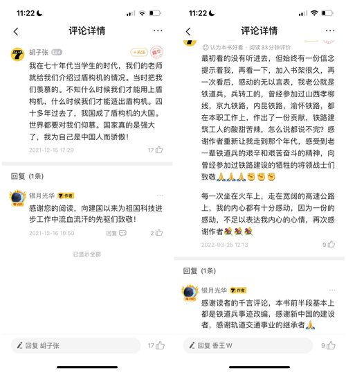 虞婧:我看見七貓小說閱讀APP上有很多讀者評論,其中好多讀者就是這個行業(yè)的從業(yè)人員或者家屬,小說走進(jìn)了工業(yè)人的心靈世界,有很多條您都回復(fù)了。看到他們的評論,您有什么體會,有沒有什么印象深刻的評論,或者比較尖銳的批評意見?