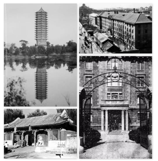 左側(cè)兩幅:舊時的燕京大學(xué);右側(cè)兩幅:北京大學(xué)沙灘紅樓舊址