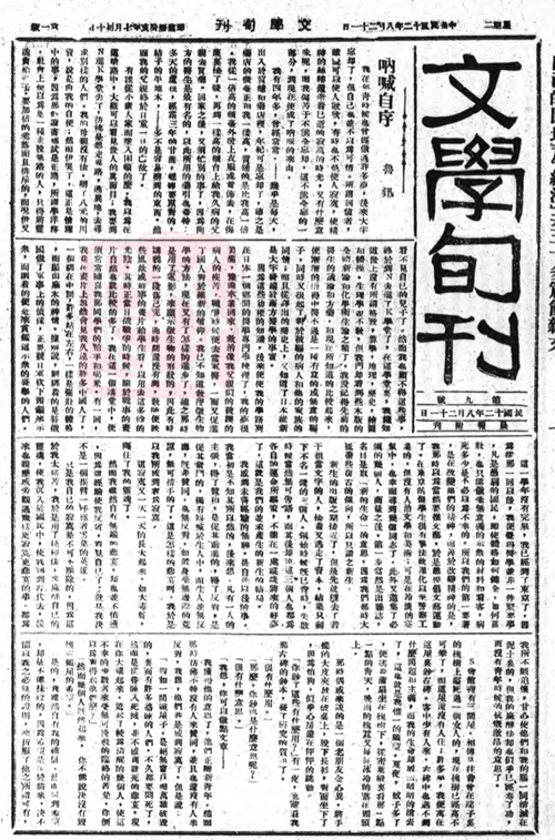 《吶喊·自序》發(fā)表于1923年8月21日北京《晨報(bào)·文學(xué)旬刊》