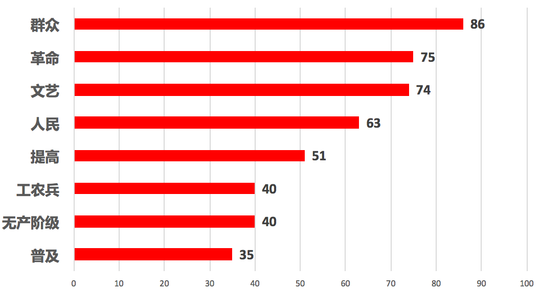 關(guān)鍵詞詞頻:群眾86次;人民63次;工農(nóng)兵40次;無(wú)產(chǎn)階級(jí)40次