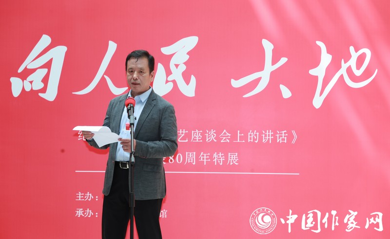 5月20日,由中國作協(xié)主辦、中國現(xiàn)代文學(xué)館承辦的“向人民大地——紀(jì)念《在延安文藝座談會(huì)上的講話》發(fā)表80周年特展”在京開幕。中國作協(xié)主席鐵凝出席開幕式并致辭。中國作協(xié)黨組書記、副主席張宏森宣布展覽開幕。開幕式由中國作協(xié)副主席、書記處書記李敬澤主持。中國作協(xié)黨組、書記處同志吳義勤、陳彥、胡邦勝、邱華棟、施戰(zhàn)軍、鄧凱出席開幕式。