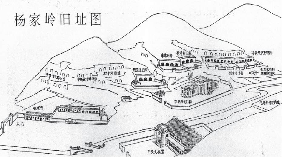 延安楊家?guī)X革命舊址示意圖,其中的中央辦公廳樓就是延安文藝座談會舊址