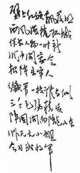 這樣經(jīng)過一周的崎嶇跋涉,11月7日,丁玲終于來到陜北保安,當(dāng)時的中共中央所在地。她受到中國共產(chǎn)黨的三重禮遇:一是中共中央宣傳部主持召開歡迎會,在保安的所有中央領(lǐng)導(dǎo)出席;二是保安成立中國文藝協(xié)會,推舉丁玲擔(dān)任主任;三是丁玲隨紅軍到前線后,毛澤東同志用軍事電報發(fā)來一首賀詞《臨江仙?給丁玲同志》:“壁上紅旗飄落照,西風(fēng)漫卷孤城。保安人物一時新。洞中開宴會,招待出牢人。纖筆一枝誰與似?三千毛瑟精兵。陣圖開向隴山東。昨天文小姐,今日武將軍。”
