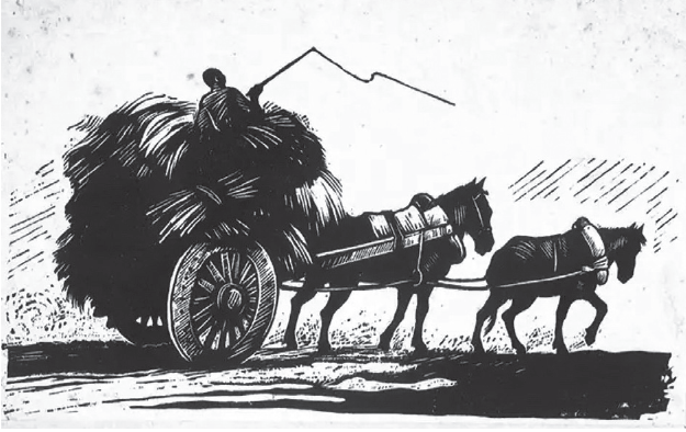 但是,他們沒有后退,而是選擇了堅持,克服“做客”心理,從學(xué)習(xí)陜北方言開始。朝夕相處的工作和生活,慢慢彌合了彼此之間的偏見和隔閡,尤其是農(nóng)村基層工作中人情世故的復(fù)雜和微妙,讓古元逐漸意識到自己的無知和農(nóng)民的智慧。“鄉(xiāng)文書的工作是既辛苦又繁雜,但每當(dāng)工作之余,稍有空閑,古元都要跟老鄉(xiāng)下地,學(xué)習(xí)耕種、鋤草、收割、放羊、推磨、起圈、趕車……每當(dāng)干農(nóng)活的時候,他總是首先以一個畫家的眼睛細致觀察,看出活計的‘門道’,一定弄個明白?!北热纾s車必須先套車,很多根繩索和韁套,先后左右,里外有序,一點也亂不得,否則就會“亂了套”。牲口還要搭配好,快慢相當(dāng),否則就會累死快的,拖死慢的。吆喝牲口有講究,揚鞭子也有名堂,要反復(fù)練習(xí)才能甩得響、打得準(zhǔn)……深入下去,古元發(fā)現(xiàn)所有在農(nóng)村世代相傳、習(xí)以為常的農(nóng)活,其實都有很深刻很獨到的規(guī)律與奧妙之處。