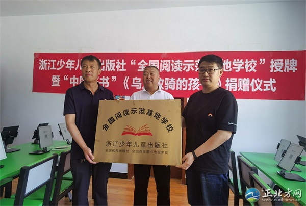 2022年是烏蘭牧騎成立65周年,也是習近平總書記給烏蘭牧騎隊員回信5周年。5月26日,浙江少年兒童出版社“全國閱讀示范基地學?!笔谂启摺爸袊脮薄稙跆m牧騎的孩子》捐贈儀式在錫林郭勒盟蘇尼特右旗第三小學舉行。該活動由北方新報社、浙江少年兒童出版社、中國人民政治協(xié)商會議蘇尼特右旗委員會共同主辦,以此鼓勵烏蘭牧騎的誕生地——蘇尼特右旗的孩子們,通過閱讀《烏蘭牧騎的孩子》,進一步了解烏蘭牧騎隊員的動人故事和感人事跡,做新時代的“烏蘭牧騎的孩子”。