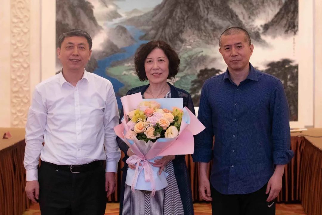 向黃蓓佳獻花 (左起:汪興國、黃蓓佳、畢飛宇)