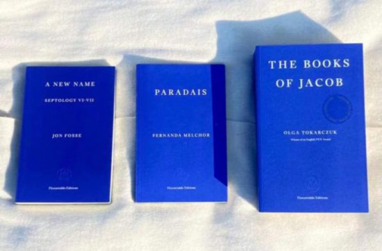 北京時間5月27日凌晨,2022年國際布克獎揭曉,印度女作家吉檀迦利·斯里小說《沙之墓》(Tomb of Sand)獲獎。而在今年4月7日公布的國際布克獎終選名單上,六本書里,出現(xiàn)了兩部英國小眾出版機構(gòu)“陸上行舟”(Fitzcarraldo Editions)的藍色封面書籍,分別是奧爾加·托卡爾丘克的《雅各布之書》(The Books of Jacob)和約恩·福瑟(Jon Fosse)的《新名稱:七部曲6-7》(A New Name: Septology VI-VII)。