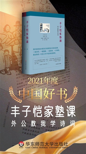 2022年4月23日,“2021年度中國好書”公布,華東師范大學出版社出版的《豐子愷家塾課:外公教我學詩詞》(全二冊)入選。該書講述了豐子愷具有特色的家庭教育——“課兒”(私塾課),豐子愷親自為兒孫講解中國古典文學,輔導他們學習外語?!罢n兒”的特點是“養(yǎng)成教育”,旨在提高孩子們的素質(zhì)和修養(yǎng)。書中除了回憶場景,還配有豐子愷插畫以及古詩詞注釋,在紙本上真實還原當年豐家的私塾課。