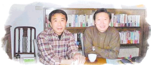 林少華(右)與日本作家村上春樹在東京。