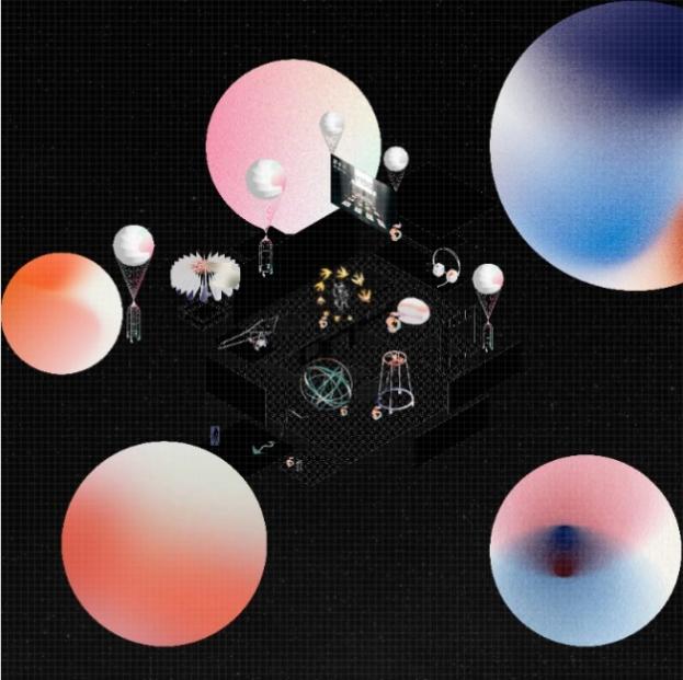 藝術(shù)展不是什么新鮮事,線上的藝術(shù)展怎么辦出新意?兩位策展人召集兩院老師和學生,從敘事設定、藝術(shù)風格、展區(qū)空間和展具多方面討論設計。最終,大會主辦方跳出常規(guī),由俞同舟選擇了“超表面”風格,讓觀者站在向四方延展開的網(wǎng)格平面上,背景是星球深淵或海底波紋,帶給他們“超現(xiàn)實”的深切體驗。同時,創(chuàng)造性地將展區(qū)分為深海、陸地、意識、天空等景觀,將展品根據(jù)主題陳列。