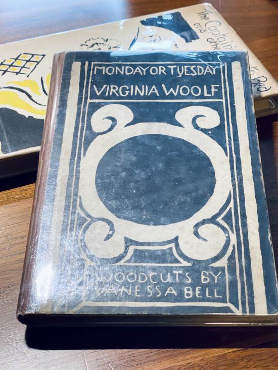 因為喜歡她的文,循序漸進地關注過她的古舊書籍。每到一處古董書店,也會尋著她的筆跡去追蹤細枝末節(jié)。有一年在舊金山的古董書集市里偶遇她1921年《Monday To Tuesday》初版(first edition),短小冊子,配著姐姐凡妮莎(Vanessa Bell 1879-1961)創(chuàng)作的版畫書衣,風格大膽野趣,價格不菲稍稍猶豫。無奈返國之后卻念念不忘,電子郵件店主,書在遂歸我。店主回復里說,我是伍爾芙書籍中為數(shù)不多的亞裔藏家,并問我的專業(yè)是否英國文學,居然有這么一個奢侈的愛好。其實慚愧,我并未讀完伍爾芙全部作品,對于原文讀解領悟皆為一知半解。只是受到一些偶然的指引,比如在紐約大學附近舊書店里得了帕蒂·斯密斯(Patti Smith 1946-)一本攝影集,其中有一張帕蒂拍攝得伍爾芙的臥室,印象非常深刻的畫面。臥室里只有一張白色的床,以及窗欞投射到墻上的大小光暈,床套潔白翻著淡淡的灰,繡著一枚樸素的十字架。