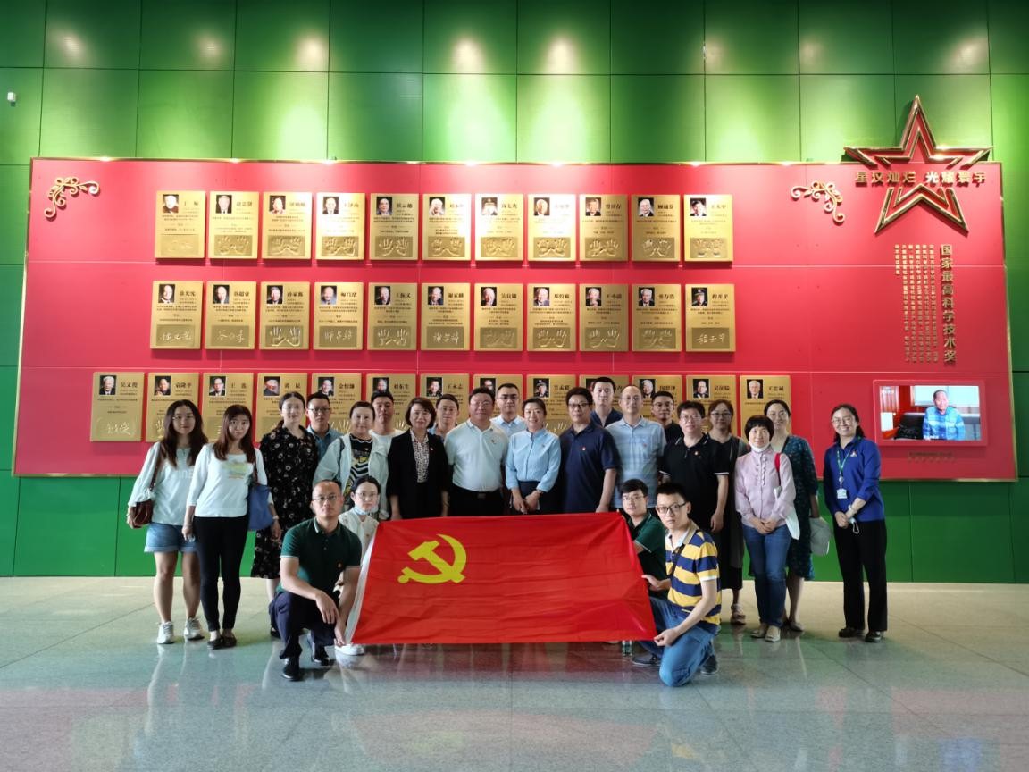 參加活動的全體黨員在“國家最高科學技術(shù)獎獲獎科學家手模墻”前合影留念