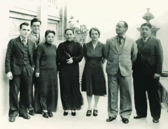宋慶齡為抗日募款宣傳而組織“保衛(wèi)中國同盟”。從左到右分別是愛潑斯坦、香港《華商報》創(chuàng)辦人鄧文釗、廖仲愷之女廖夢醒、宋慶齡、司徒永覺的夫人希爾達·塞爾溫-克拉克(Hilda Selwyn-Clarke)、我們的主人公佛朗士和廖仲愷之子廖承志,攝于1938年。香港大學(xué)檔案館藏。