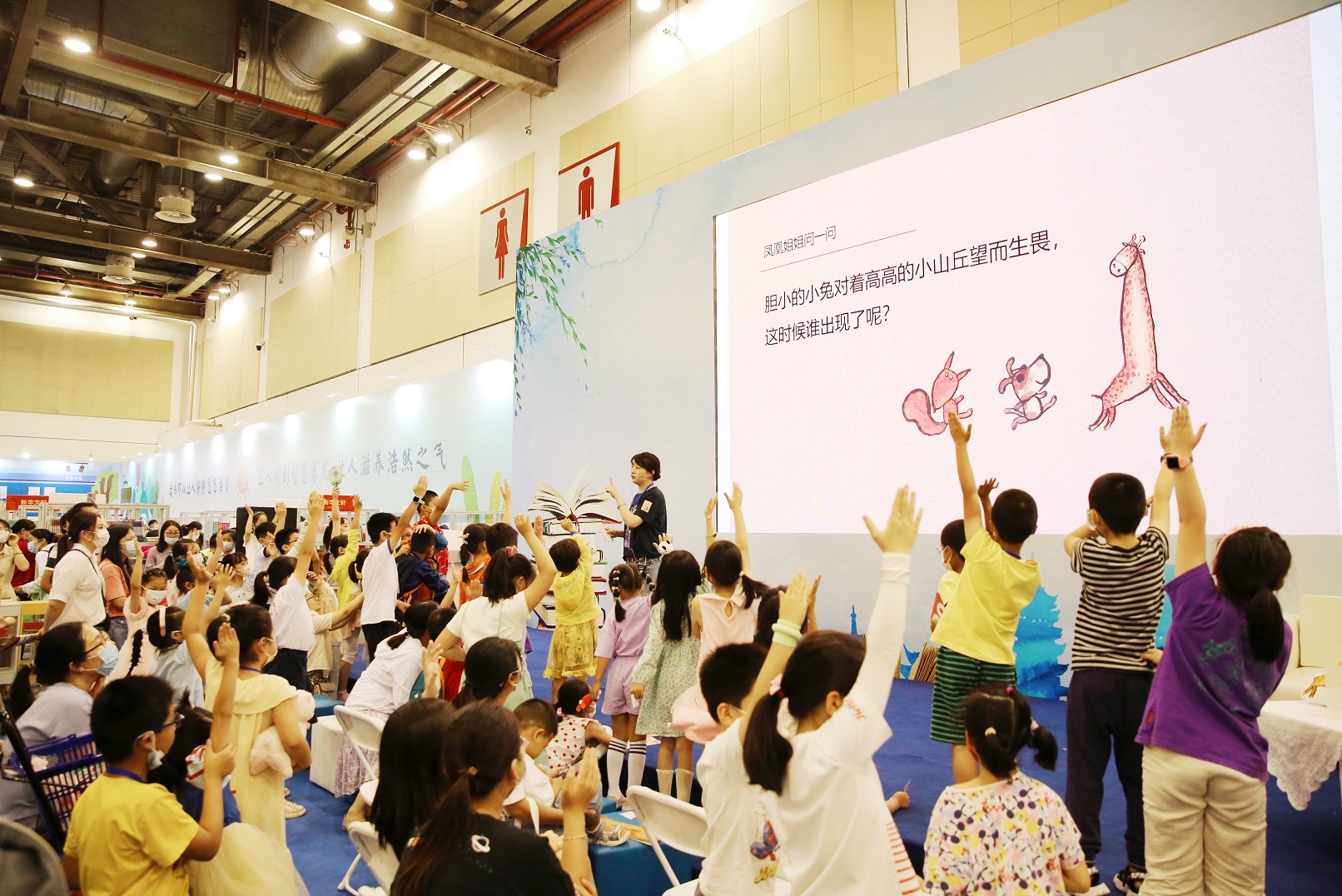7月3日,江蘇鳳凰少年兒童出版社(以下簡(jiǎn)稱(chēng)“蘇少社”)與第十二屆江蘇書(shū)展主辦方共同開(kāi)展“同一天、同一時(shí)間段、為讀者共讀一本圖畫(huà)書(shū)”的活動(dòng)。在蘇州國(guó)際博覽中心展館的青少年閱讀館舞臺(tái)區(qū),鳳凰姐姐李璐帶領(lǐng)小讀者們共同閱讀繪本《小兔一點(diǎn)兒也不怕》,在愉快的氛圍中感受小故事蘊(yùn)含的大魅力。