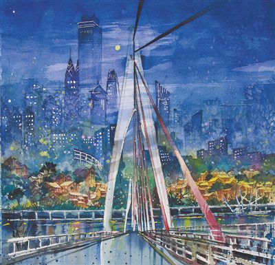 對(duì)城市綠色空間和自然景觀的描繪,既反映出當(dāng)代美術(shù)工作者對(duì)生態(tài)環(huán)境保護(hù)與建設(shè)的高度關(guān)注,也為山水城市留下了多彩的視覺記錄。在這一系列創(chuàng)作中,“城市山水畫”作為年輕的繪畫類型,其表現(xiàn)題材和創(chuàng)作技法伴隨城市更新而更新,在一定程度上推動(dòng)了傳統(tǒng)山水畫的創(chuàng)造性轉(zhuǎn)化、創(chuàng)新性發(fā)展,為當(dāng)代美術(shù)創(chuàng)作提供了借鑒。
