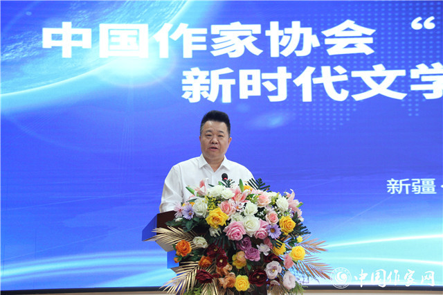 邱華棟在授牌儀式上講話。他表示,中國作家協(xié)會設(shè)立“深入生活、扎根人民”新時代文學實踐點,就是要進一步團結(jié)引領(lǐng)廣大作家與人民同行、與時代同步,堅持以人民為中心的創(chuàng)作導向,鼓勵廣大作家把“深入生活、扎根人民”作為長期自覺的行動,進一步推動“深入生活、扎根人民”新時代文學主題實踐常態(tài)化、長效化,推動新時代文學繁榮發(fā)展。同時,這次文學實踐點掛牌活動也是中國作協(xié)堅持以鑄牢中華民族共同體意識為主線,全力推進“文化潤疆”工程的重要舉措。