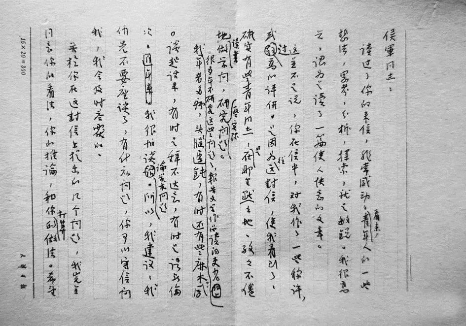這并不是說,你在信中,對我作了一些稱許,或過高的評價(jià)。是因?yàn)閺倪@封信,使我看到了:確實(shí)有些青年同志,是在那里默默地、孜孜不倦地讀書做學(xué)問,研究一些實(shí)際問題。