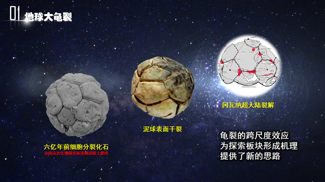 唐春安通過圖示講解“地球大龜裂”科學(xué)假說形成的思路