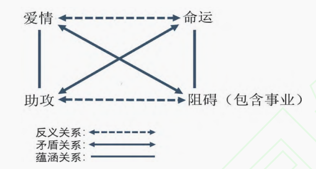 當(dāng)我們以格雷馬斯的“意義矩陣”為文學(xué)批評方式,為女頻網(wǎng)絡(luò)文學(xué)的敘事新變做出圖繪,其中深層敘事結(jié)構(gòu)的轉(zhuǎn)變也躍然紙上。