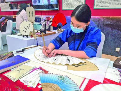 在這場(chǎng)展覽上,非遺傳承人的藝術(shù)靈感每天都在進(jìn)行碰撞,擦出新的火花??缃?、創(chuàng)新與“云端”,讓非遺文化在交融中發(fā)展。