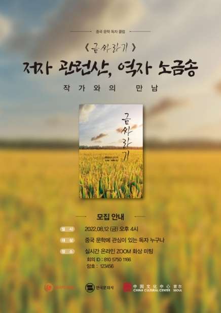 2022年是中韓建交30周年,也是“中韓文化交流年”。值此重要時(shí)刻,韓國“中國文學(xué)讀者俱樂部”首場活動(dòng)“綠水青山就是‘金山銀山’——關(guān)仁山《金谷銀山》韓文版分享會(huì)”于8月12日舉辦。本場活動(dòng)由中國作家協(xié)會(huì)主辦,中國圖書進(jìn)出口(集團(tuán))有限公司與韓國文化社聯(lián)合承辦,首爾中國文化中心協(xié)辦。中國作家關(guān)仁山、《金谷銀山》韓文版譯者魯錦松、韓國文化社營銷部部長趙正憲以及對中國語言、文化感興趣的當(dāng)?shù)鼐庉?、譯者、大學(xué)生等各界人士參加活動(dòng),參會(huì)人數(shù)達(dá)40人。
