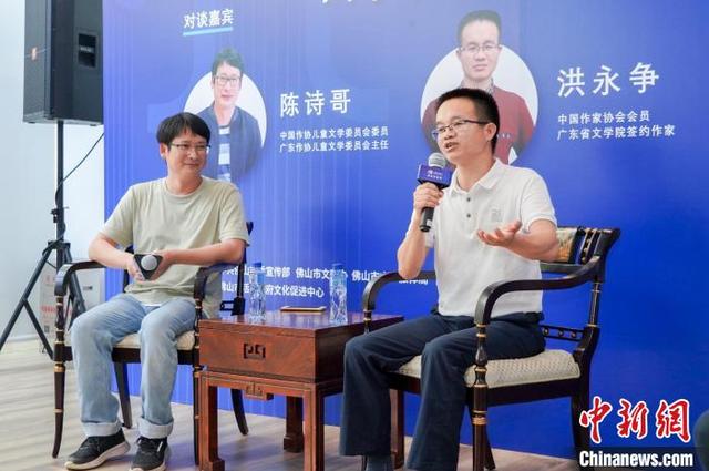 作家陳詩(shī)哥、洪永爭(zhēng)22日下午亮相2022南國(guó)書(shū)香節(jié)佛山分會(huì)場(chǎng),圍繞“中國(guó)兒童文學(xué)的灣區(qū)時(shí)間”主題,向大小讀者分享了創(chuàng)作經(jīng)驗(yàn)。