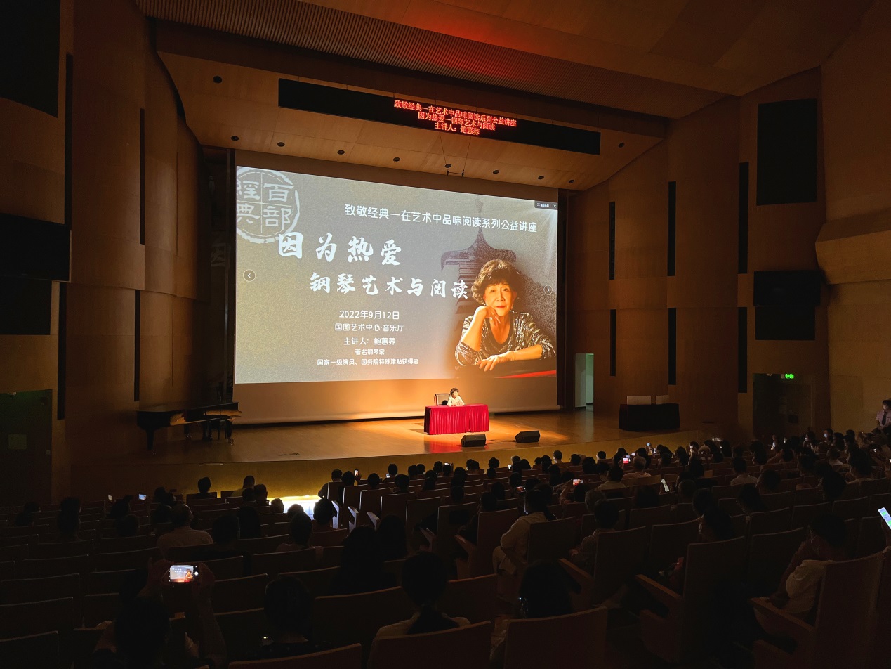9月12日上午,“致敬經(jīng)典·在藝術(shù)中品味閱讀”系列公益講座第三場活動在國家圖書館藝術(shù)中心音樂廳舉辦。本場講座特邀鋼琴演奏家鮑蕙蕎為主講嘉賓,為廣大讀者帶來題為《因為熱愛——鋼琴藝術(shù)與閱讀》的主題講座。