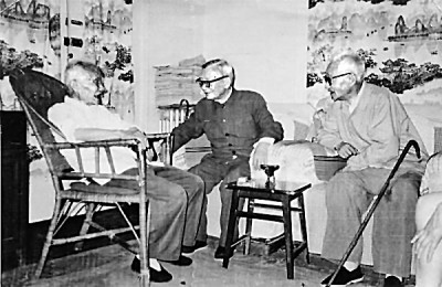 1982年7月7日下午,朱光潛(左)、茅以升(中)、宗白華三位老學者在朱光潛家會面談心 資料圖片