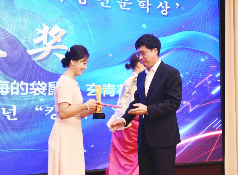 9月15日,延邊作家協(xié)會(huì)第十屆理事會(huì)第二次會(huì)議暨第三屆“延邊作家協(xié)會(huì)青年文學(xué)獎(jiǎng)”頒獎(jiǎng)典禮在延吉舉行。州委常委、宣傳部部長金基德出席會(huì)議,并為“延邊作家協(xié)會(huì)青年文學(xué)獎(jiǎng)”獲獎(jiǎng)?wù)哳C獎(jiǎng)。