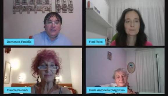 在活動(dòng)上,意大利作家、翻譯家、花達(dá)西亞出版社社長費(fèi)沃里·皮克女士 (Fiori Picco,中文名:雪蓮) ,意大利詩人、弗蘭徹斯克加百利國家文學(xué)獎(jiǎng)主席多梅尼科·法涅洛先生 (Domenico Faniello),意大利著名作家、導(dǎo)演克勞迪婭·帕隆比女士 (Claudia Palombi)和意大利著名詩人、畫家、馬泰拉文學(xué)藝術(shù)獎(jiǎng)主席瑪麗亞·安東內(nèi)拉·達(dá)格斯蒂諾女士 (Maria Antonella D’Agostino)四位嘉賓就魯敏作品展開了熱烈對(duì)話,并通過優(yōu)兔(Youtube)平臺(tái)播放,吸引了一大批熱愛文學(xué)的意大利讀者在線觀看。