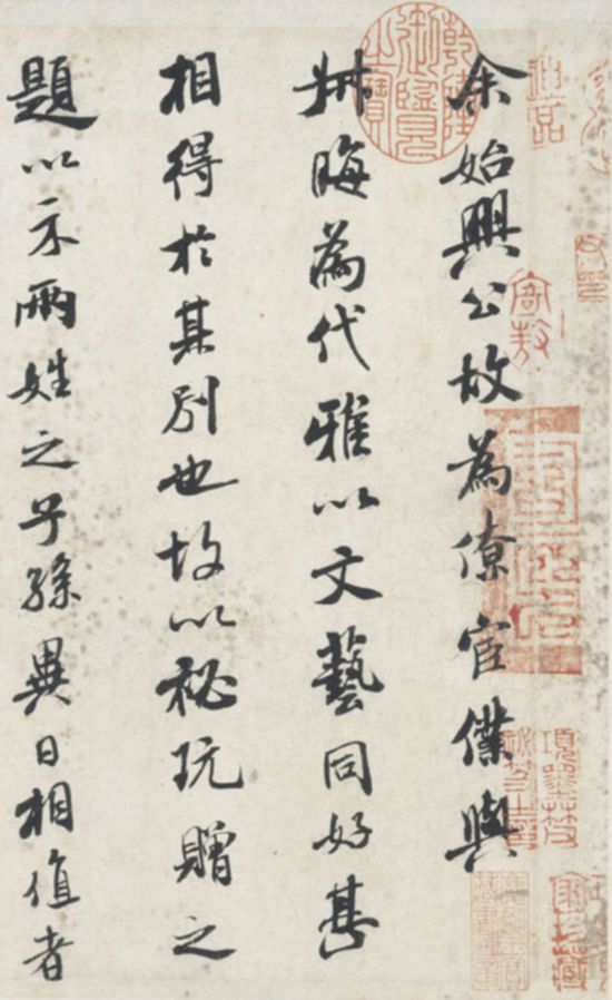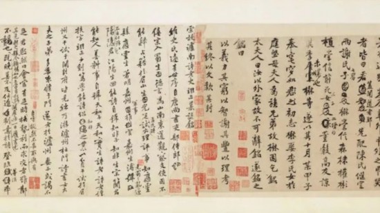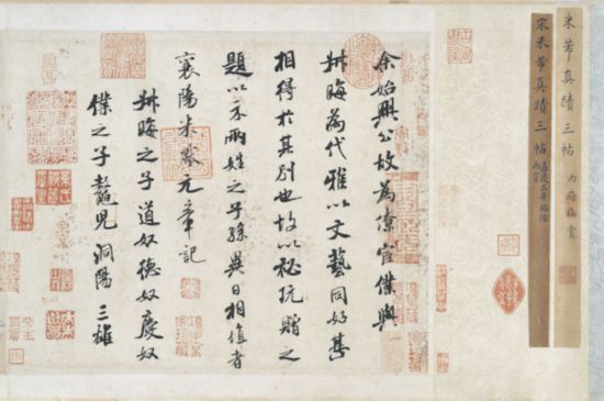 據(jù)悉,米芾三帖卷,明清時期屢見著錄,如明汪砢玉《珊瑚網(wǎng)》法書題跋卷六、郁逢慶《郁氏書畫題跋記》卷四,清吳其貞《書畫記》卷四、卞永譽《式古堂書畫匯考》書卷之十一(錄自《珊瑚網(wǎng)》)、安岐《墨緣匯觀》法書上卷等。上述諸家著錄中,或僅為一帖,或為四帖(《張季明帖》后有《倒念揭諦咒》帖),或為七帖。至明項元汴收藏時為三帖(見卷后項氏跋記),即后之安氏藏本(見《墨緣匯觀》)。故疑米芾此三帖,明末清初時已屢經(jīng)割裂、分拆、拼湊及重裱,亦不排除某些著錄中非今傳之物。該書法作品后經(jīng)原田悟朗、阿部房次郎、阿部孝次郎收藏后,最終成為東京國立博物館藏品。