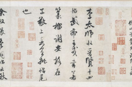 《李太師帖》:“李太師收《晉賢十四帖》。武帝、王戎書若篆。謝安格在子敬上。真宜批帖尾也。”