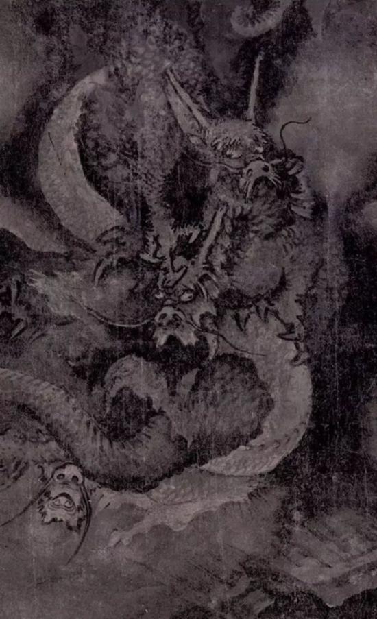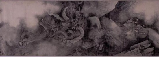 《五龍圖卷》卷末有“所齋”之印,據(jù)稱為陳容之作?!段妪垐D卷》共畫五龍,分置于山石、云霧和急流之中。五龍動態(tài)各不相同,生動有致,陰森恐怖,極富想象力。構圖上虛實相映,有張有弛,氣勢驚人。