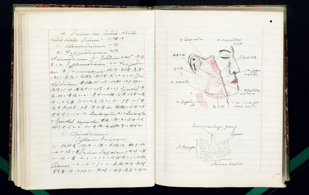 四是1904年至1906年在仙臺醫(yī)專留學一年半,課程有《德語》《解剖學》《物理學》《化學》《組織學》《倫理學》《骨學》《血管學》《神經學》《體操》等,目前留存的僅有《解剖學》課堂筆記,其余均散佚。僅《解剖學》筆記就有6冊,達10余萬字,可見散佚的其余各課程筆記應不少于20萬字。