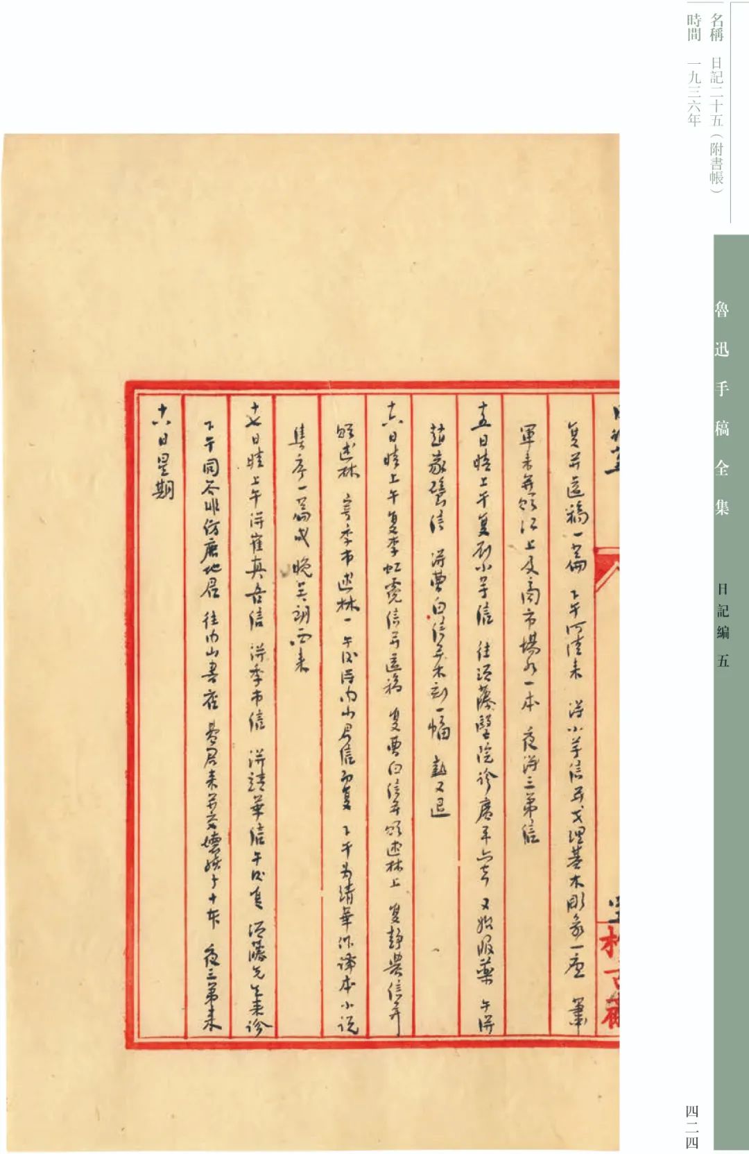 4.1978年至1986年文物出版社陸續(xù)出版的《魯迅手稿全集》共6函60冊,總計約300萬字(含創(chuàng)作、書信、日記,內容基本上已收入《魯迅全集》,也有極個別因不成文未收)。