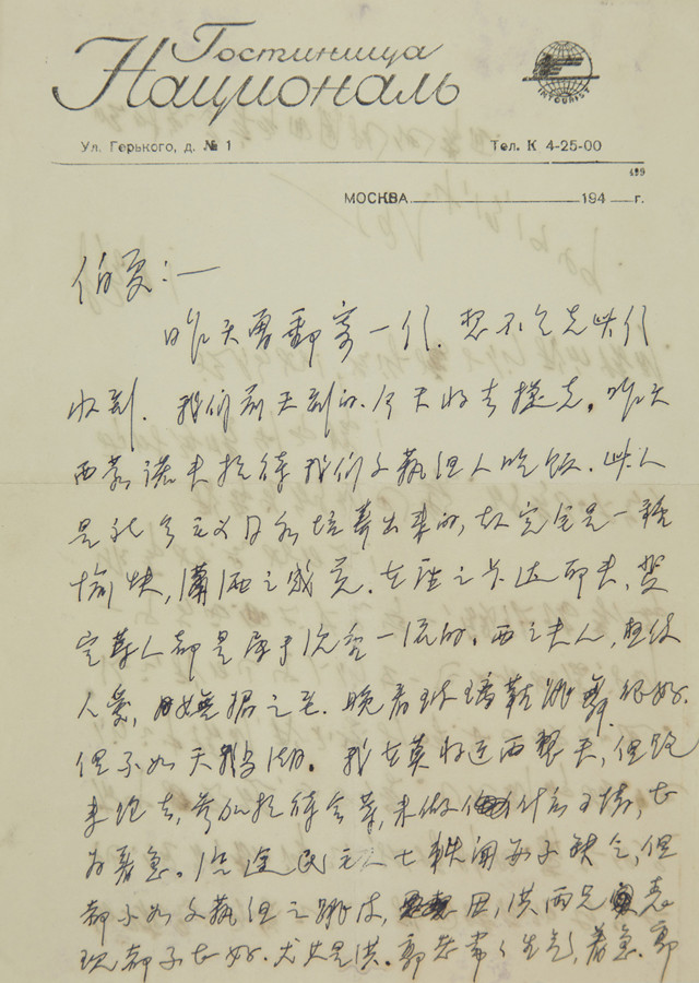 此外,記者看到,展覽也設(shè)有一些小板塊。如作家“丁玲”板塊,有丁玲致陳明信,也有馮雪峰致丁玲信。丁玲致陳明信寫于1949年4月13日,地點是莫斯科。1949年3月24日,中國婦女第一次全國代表大會在中南海懷仁堂舉行預備會,會上選出出席世界擁護和平大會的婦女代表,她們是:李德全、丁玲、龔普生、陸璀、吳青。3月27日,《人民日報》在第三版刊登消息《出席巴黎和平大會 中國代表團已正式組成 郭沫若任團長日內(nèi)出國》:“中國代表團選出郭沫若為代表團團長,劉寧一、馬寅初為副團長,錢俊瑞為秘書長。并決定于日內(nèi)出國,在四月二十日以前趕到巴黎?!贝韴F于4月11日下午抵達莫斯科。此信內(nèi)容是關(guān)于代表團在莫斯科的活動以及丁玲與代表團成員、莫斯科文藝界接待人員的交往情況。而在馮雪峰致丁玲信中,則反映了兩人深厚的友誼。此時,丁玲已去延安,馮雪峰代為處理了丁玲母親的相關(guān)事情,并問道其創(chuàng)作情況等。