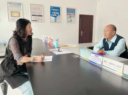 作者在金溝鄉(xiāng)郵政所采訪唐和順(右)