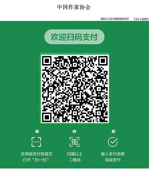 請掃描右側二維碼,通過微信或支付寶將會費直接轉入中國作家協(xié)會銀行賬號。