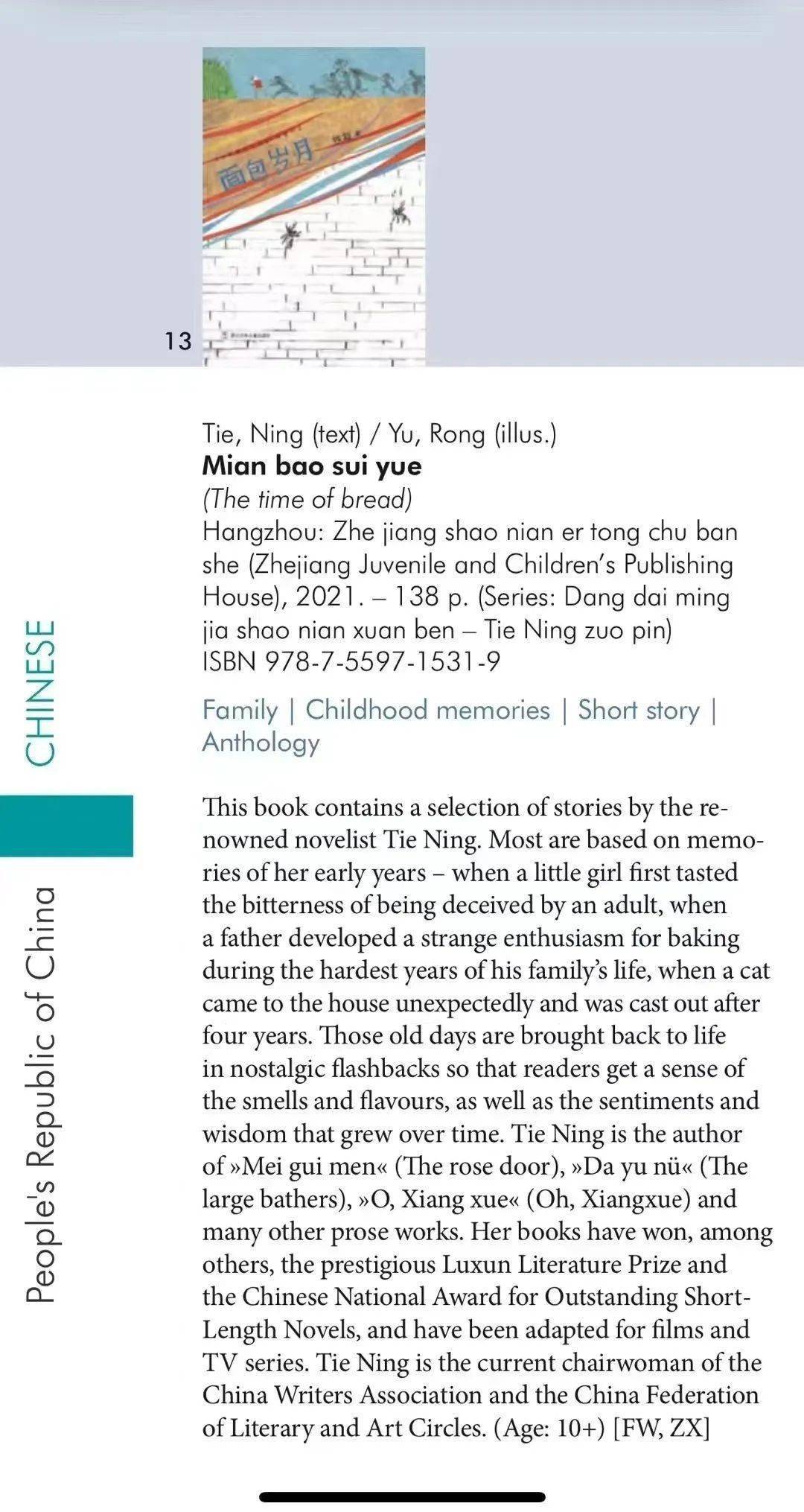 近日,德國國際青少年圖書館揭曉2022年“白烏鴉書目” (White Ravens),浙江少年兒童出版社出版的《面包歲月》(鐵凝著)入選。