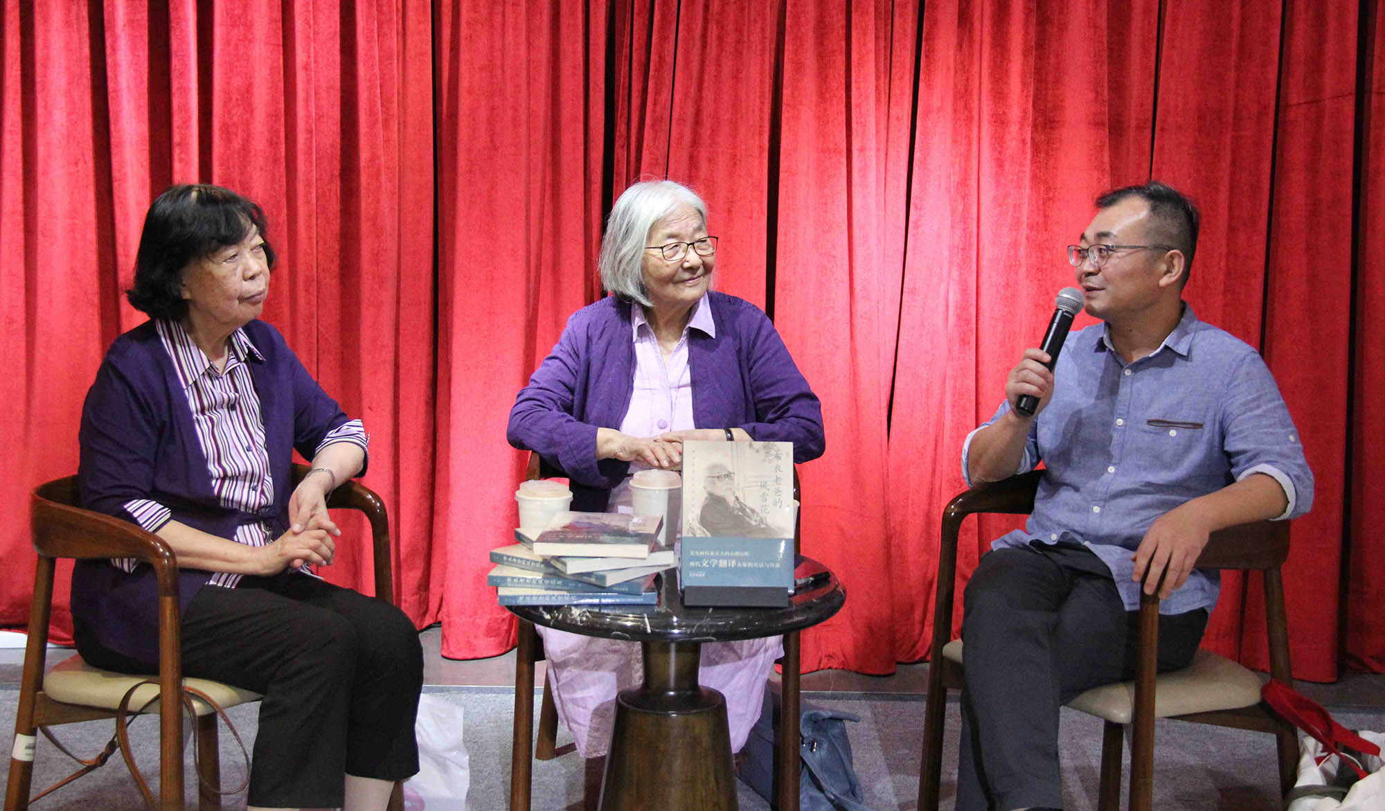 《布衣老爸的風(fēng)雪花月:翻譯家張谷若和他的世紀(jì)》新書(shū)首發(fā)式現(xiàn)場(chǎng),從左至右:任吉生、張玲、高立志